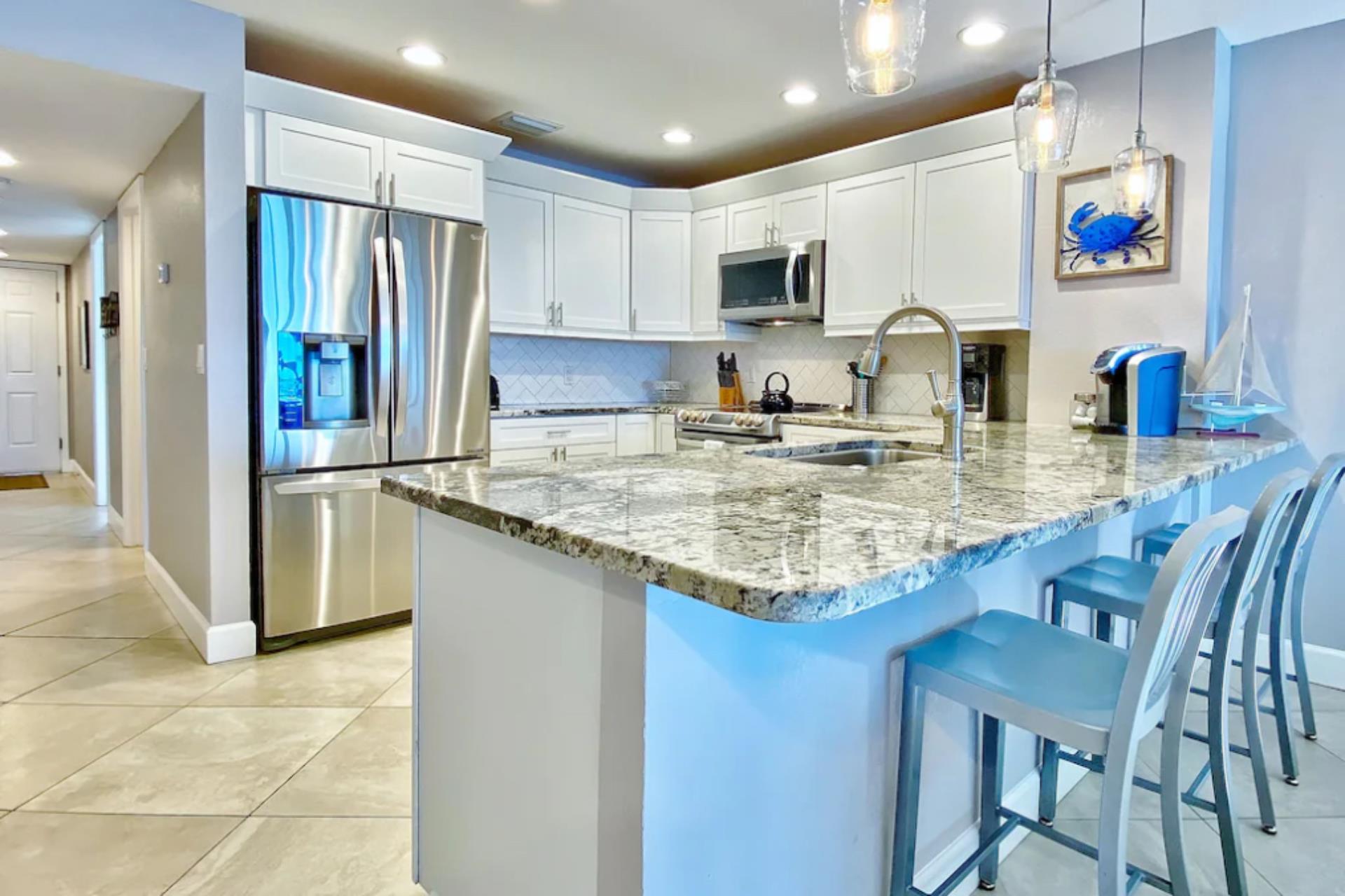 Our beautifully remodeled CORNER unit, SeaGate unit 301 is a fresh and relaxing condo to sit back, put your feet up and have a memory making vacation! Breathtaking unobstructed beach views from the living room, master bedroom as well as intracoastal views from the queen bedroom. We have 3 bedrooms, 2 bathrooms and a full kitchen. Corner units have 2 balconies! A large wrap around balcony off of the living room and master, the bonus second balcony in the 3rd bedroom overlooking the intercostal!
