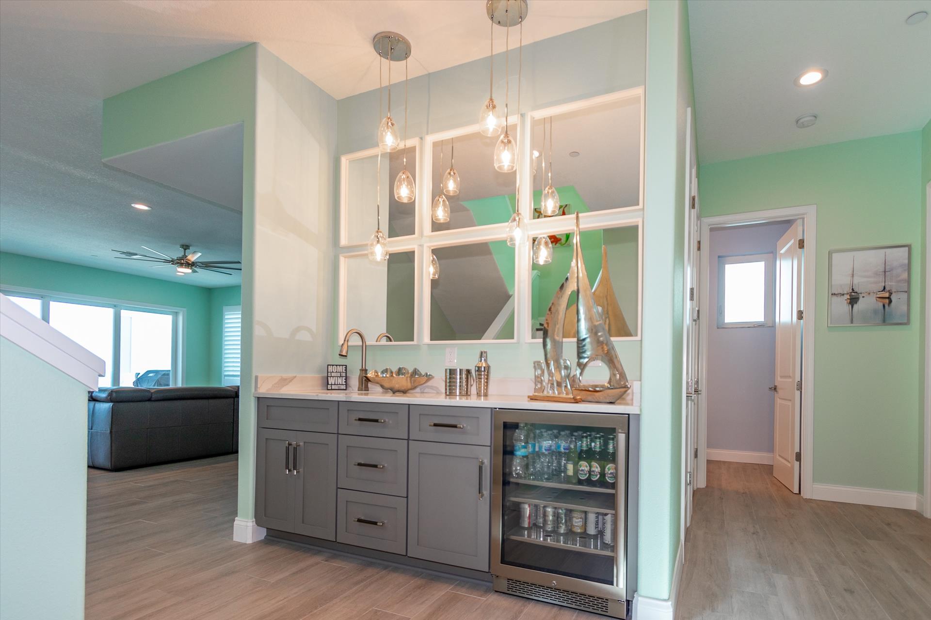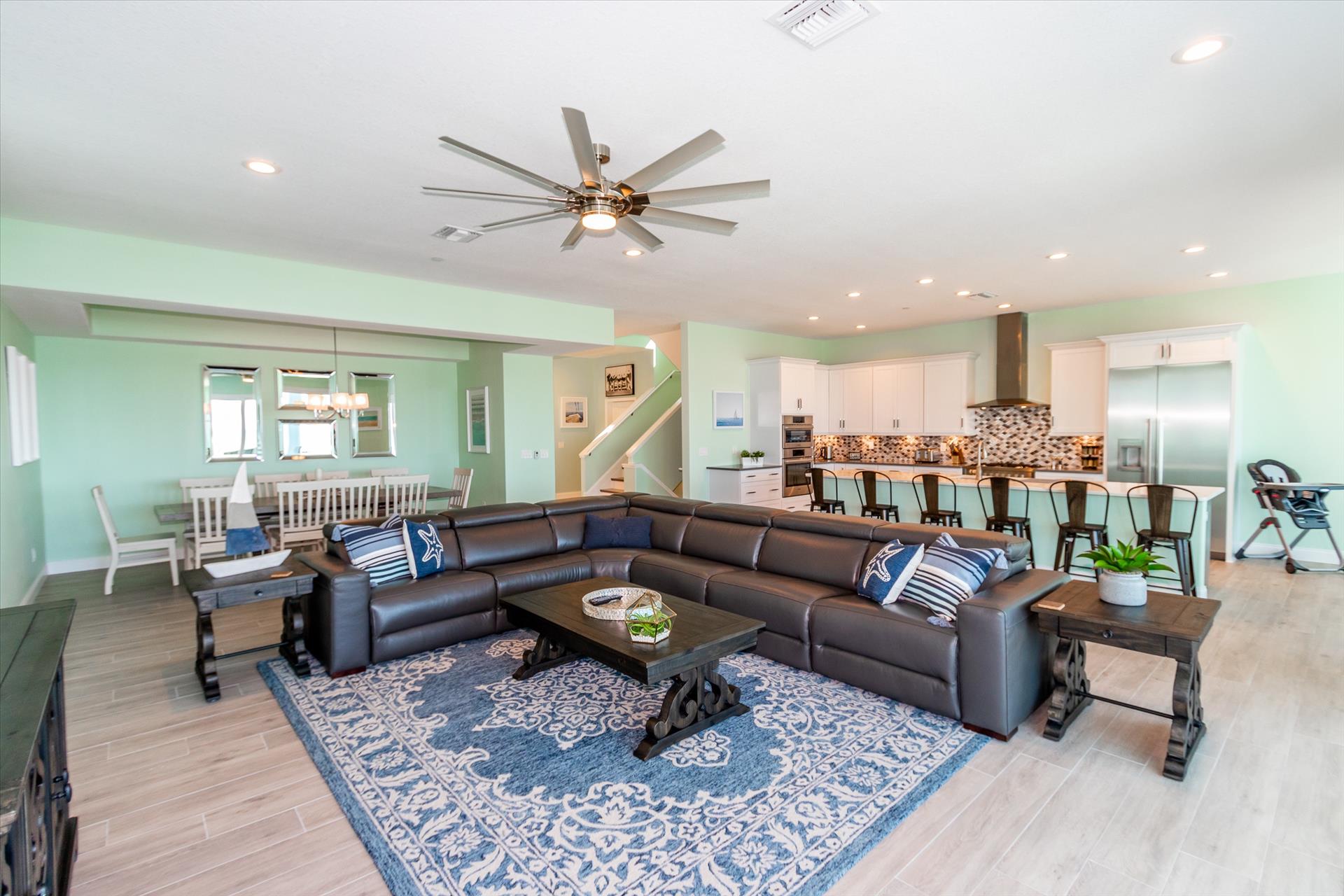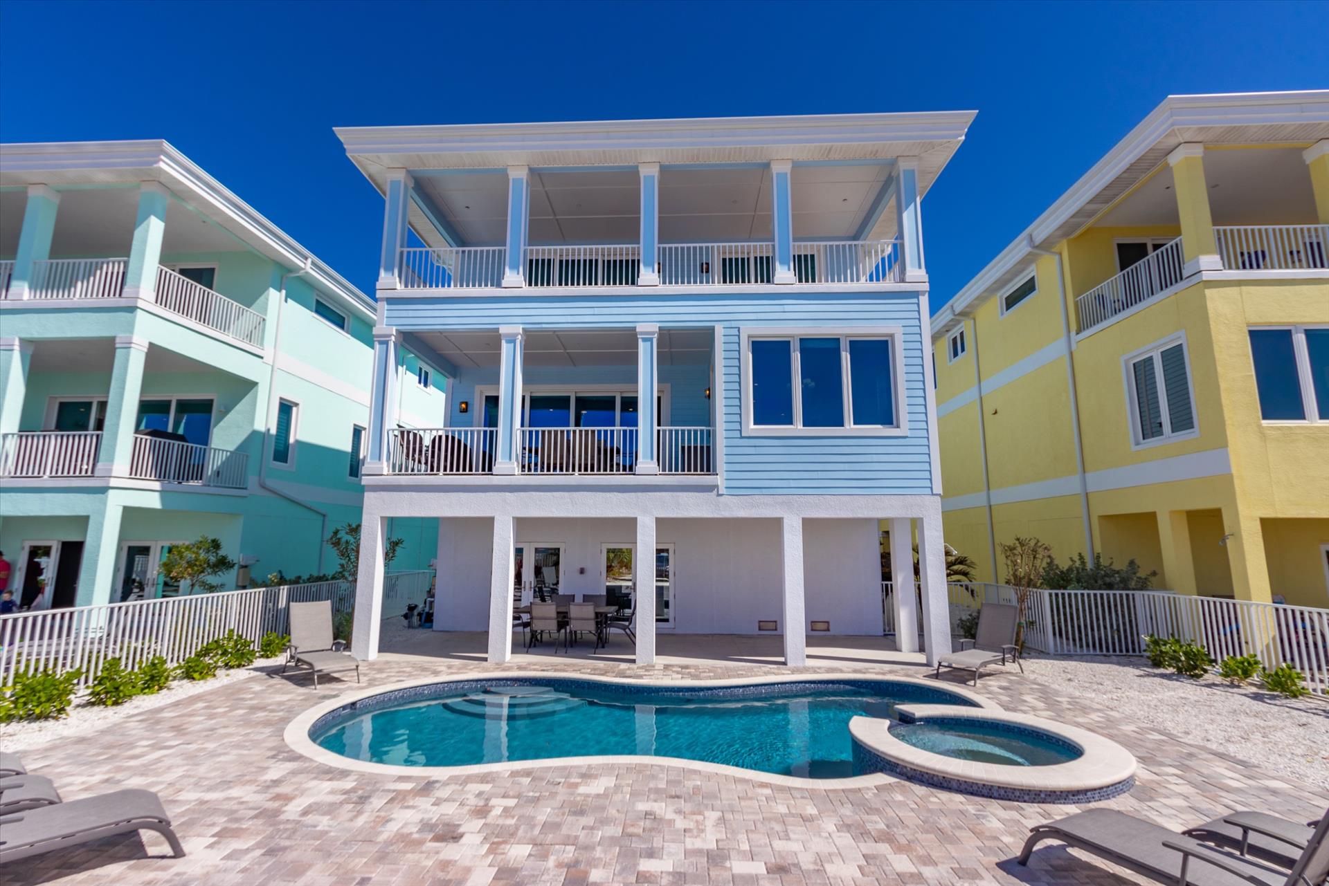 The rear of the property has a pool and hot tub, with sunbeds and seating for you and your party to relax in. There is also an outdoor shower for you to rinse off after a dip in the warm Gulf of Mexico which is just steps away. There are plenty of amenities and toys for your use. We have beach chairs and umbrellas, Paddle boards and Kayaks available for your use*. There is also a full crib, pack-n-play, high chair and baby gates for your convenience. There is no doubt, that you, your family and friends will enjoy your stay in our home.