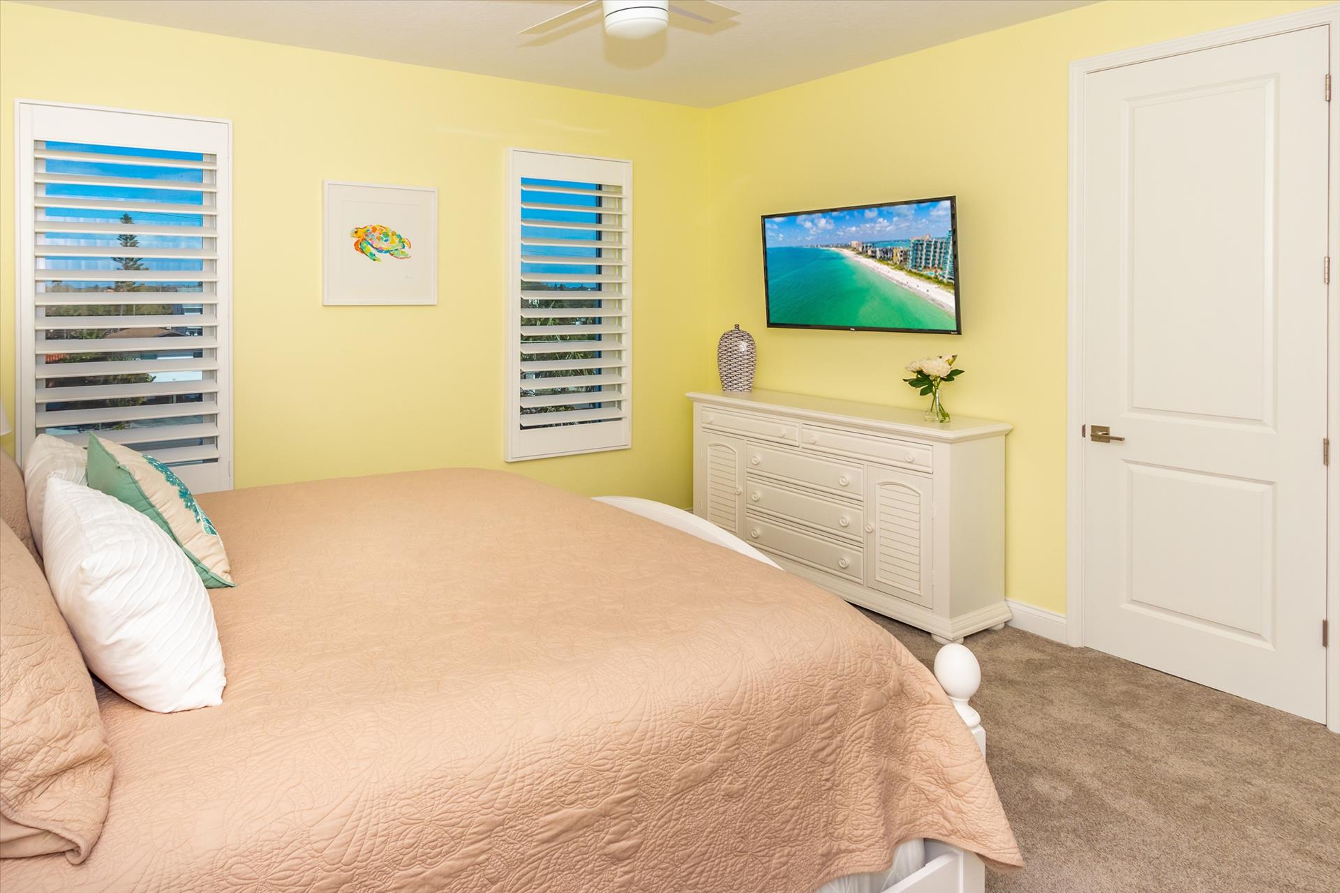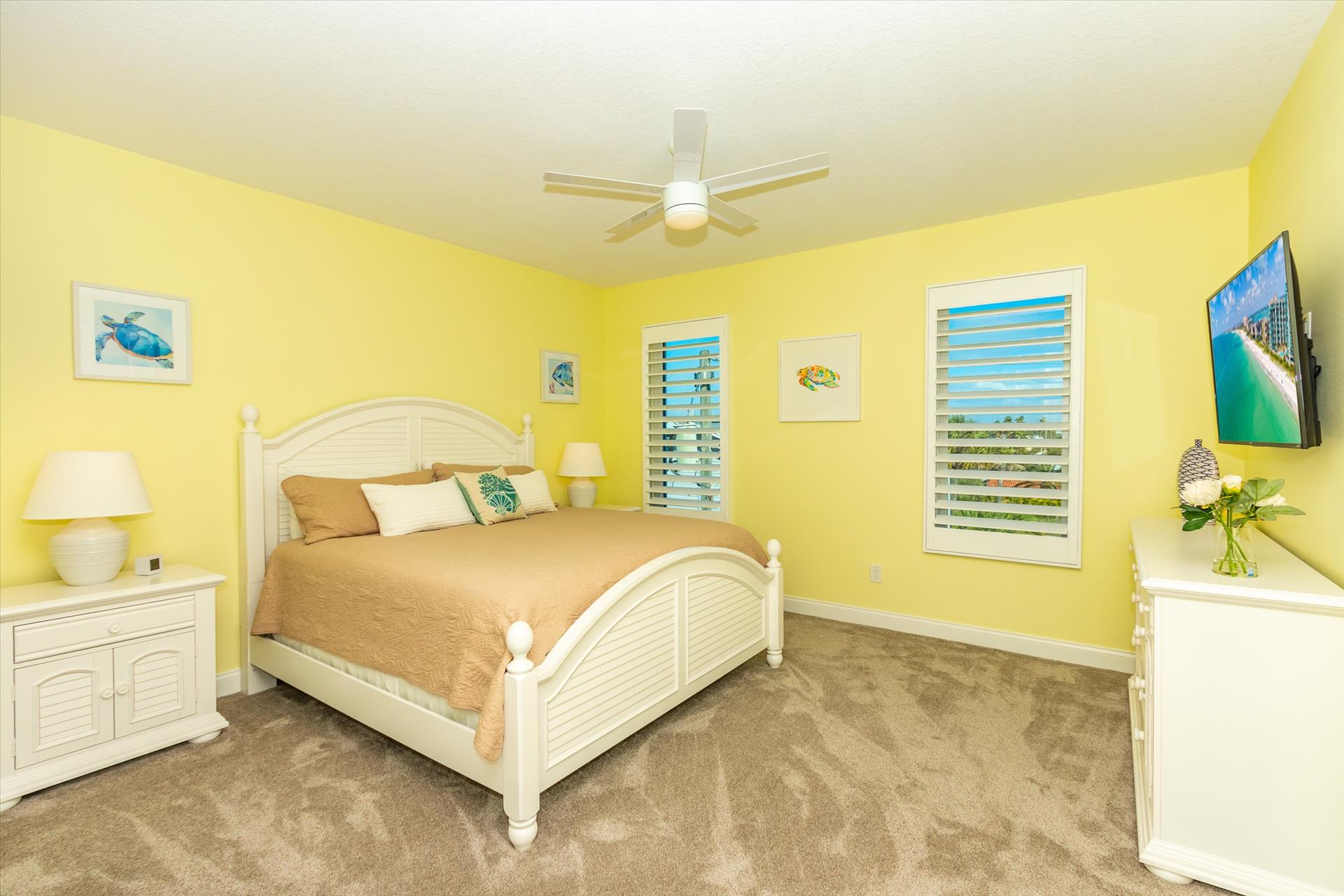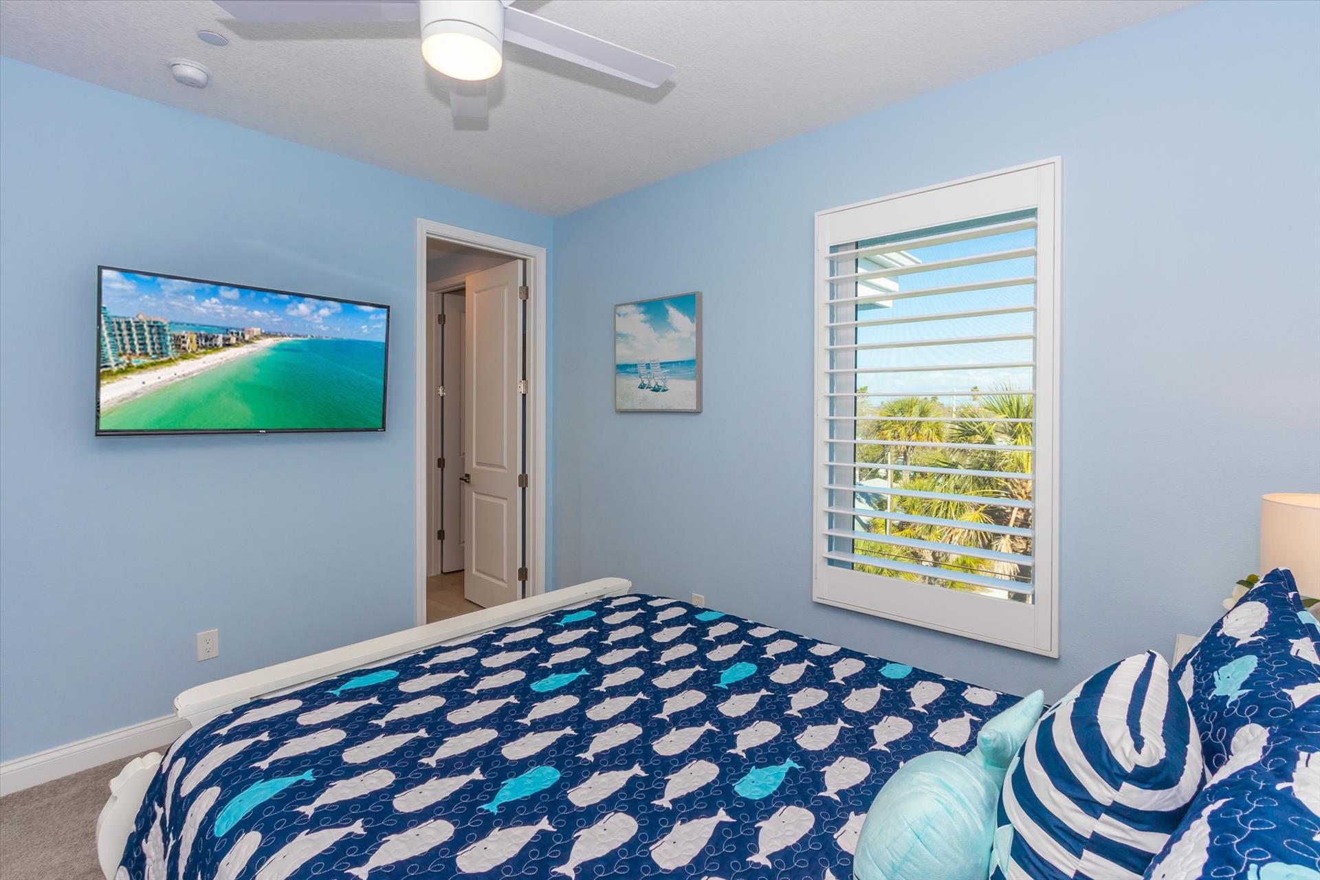 The third floor consists of the remaining 4 bedrooms. The master bedroom has a king bed and large walk in closet. The master bathroom features a soaking tub and separate walk in shower as well as a double sink/vanity unit. Bedroom 2 has a king bed and an en suite tub/shower combination. This bedroom and the master share a large balcony with incredible views of the beach and the Gulf of Mexico. The other two bedrooms on this floor share a Jack'n'Jill bathroom. One bedroom has a queen bed, the other a king bed. There is also a laundry room on the 3rd floor. All bedrooms have a flat screen smart TV.