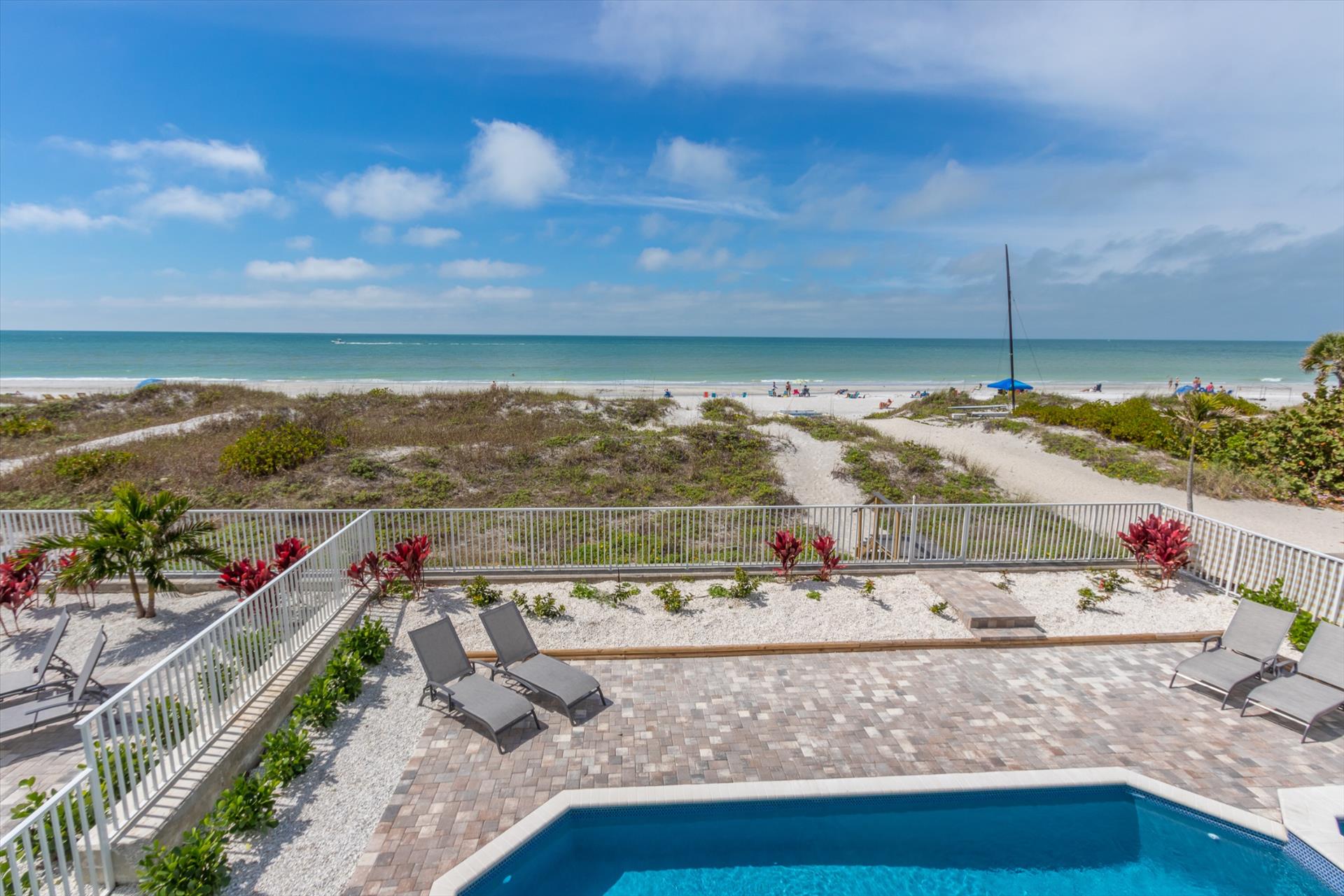 This fabulous brand construction home is located directly on the golden sands of Indian Rocks Beach. Following our tried and tested floor plan which our guests have loved, the house consists of 6 bedrooms with 4.5 bathrooms set over 3 floors.