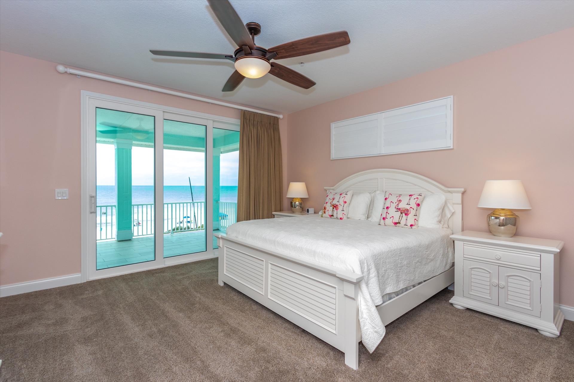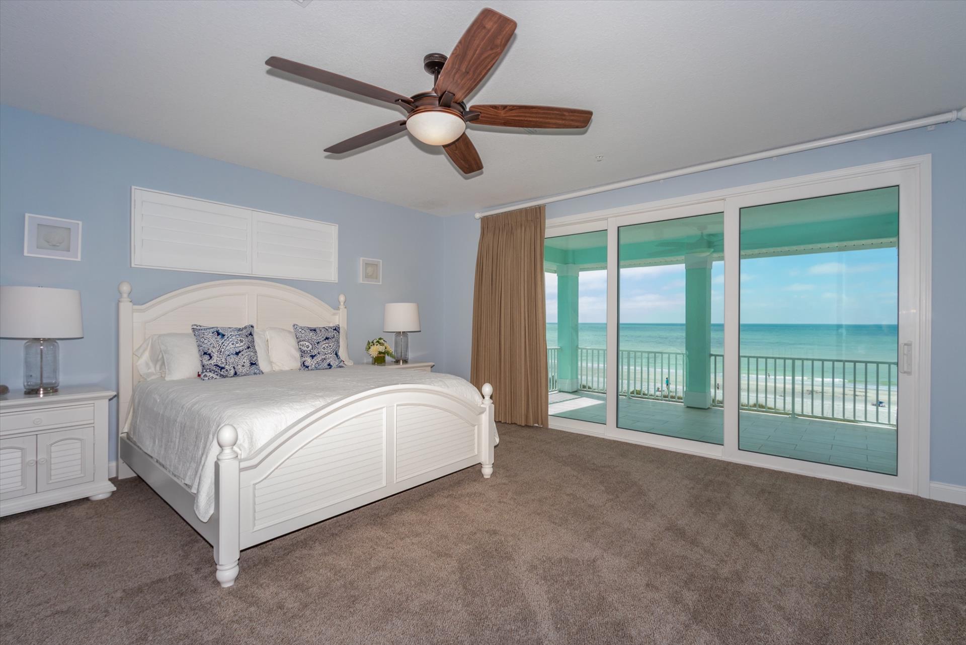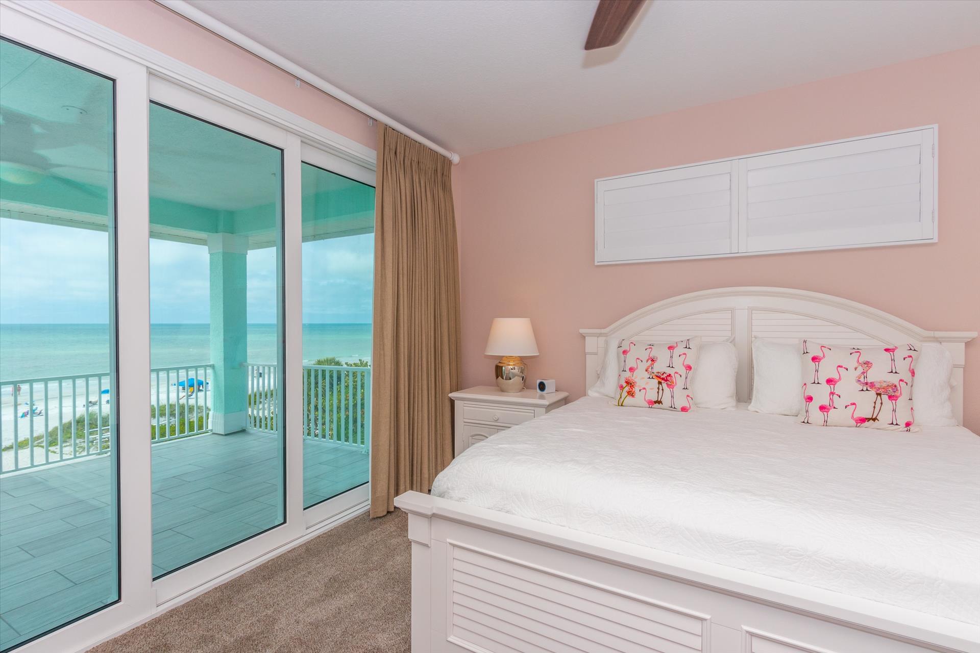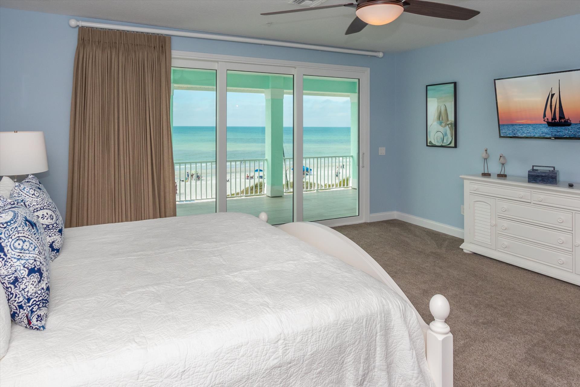 The third floor consists of 4 more bedrooms. The master bedroom has a king bed and large walk in closet. The master bathroom features a soaking tub and separate walk in shower as well as a double sink/vanity unit. Bedroom 2 - The 'Second Master' has a king bed and en suite bathroom with tub/shower combination. The other two bedrooms on this level share a Jack'n'Jill bathroom. One bedroom has a queen bed and the other has a king bed. There is also a laundry room on the 3rd floor, as well as another large balcony with incredible birds’ eye views over the beach. All of the bedrooms have flat screen TV's.