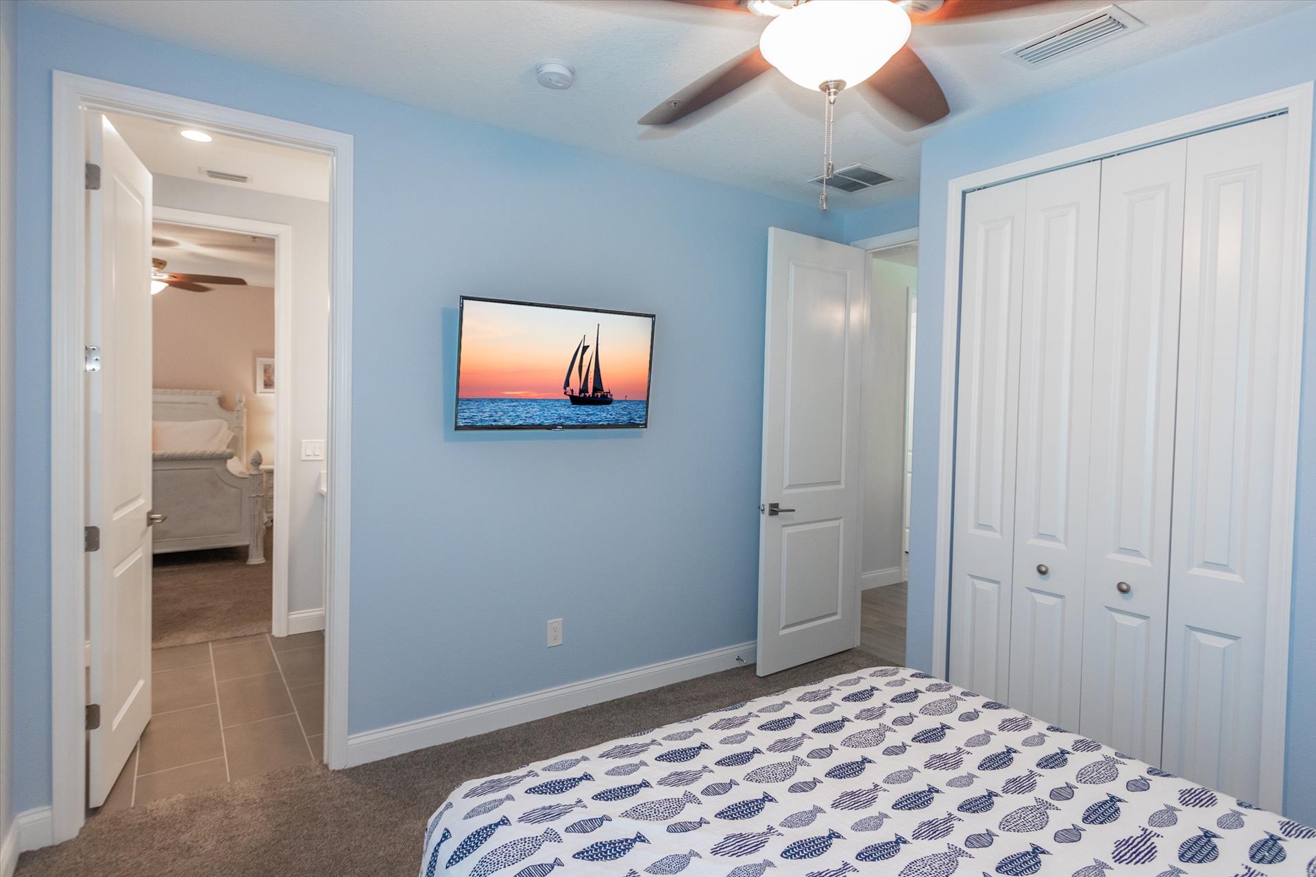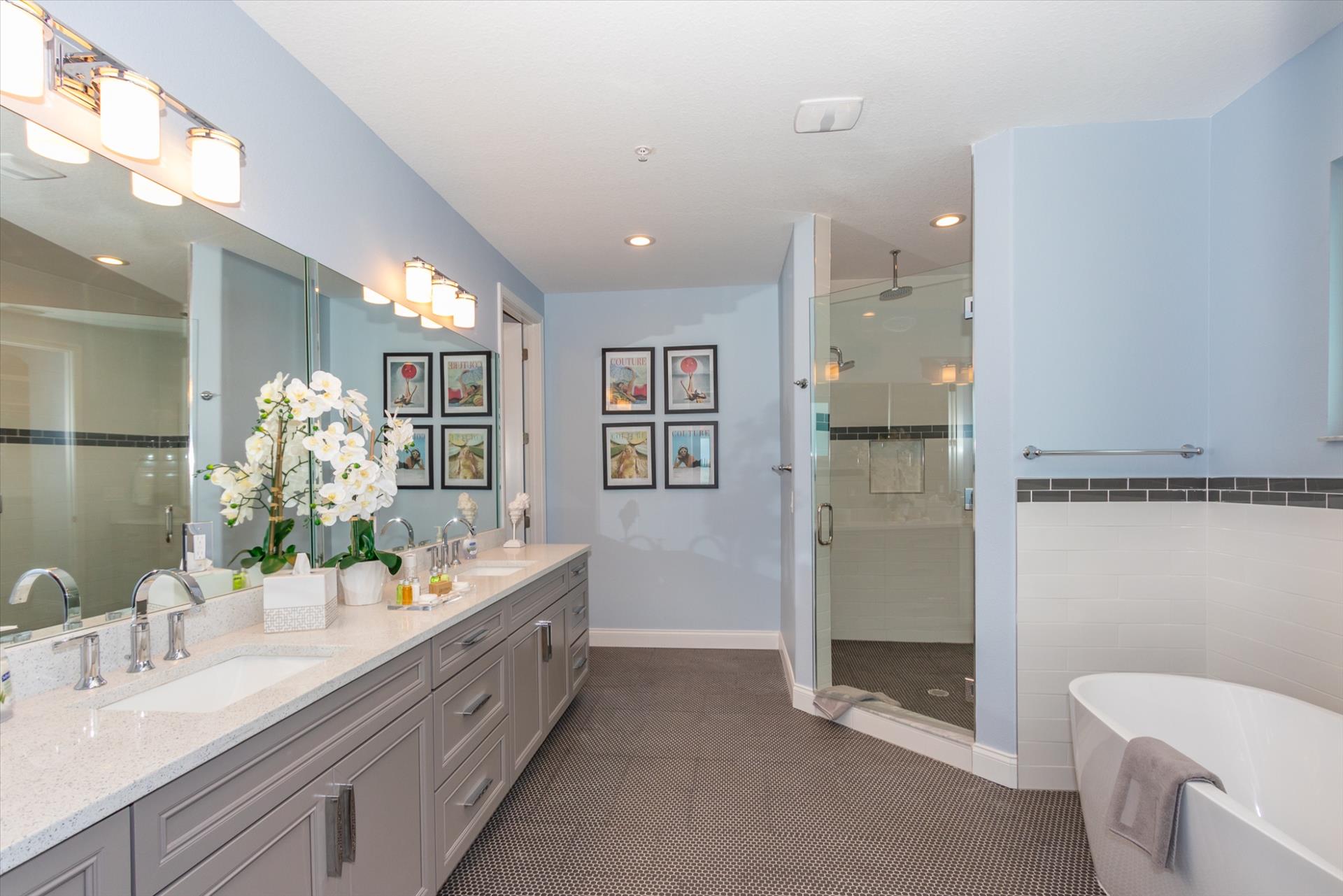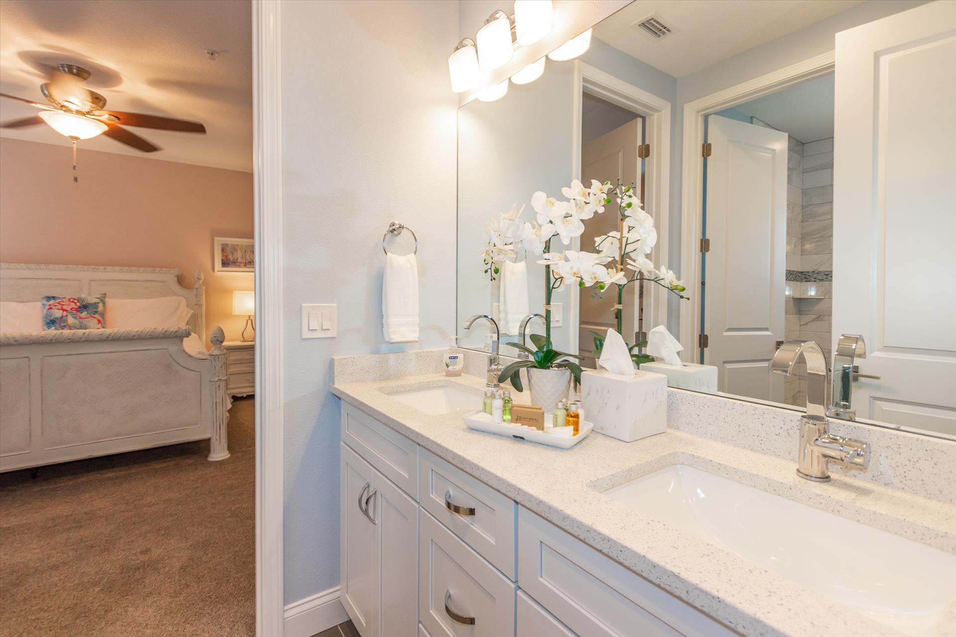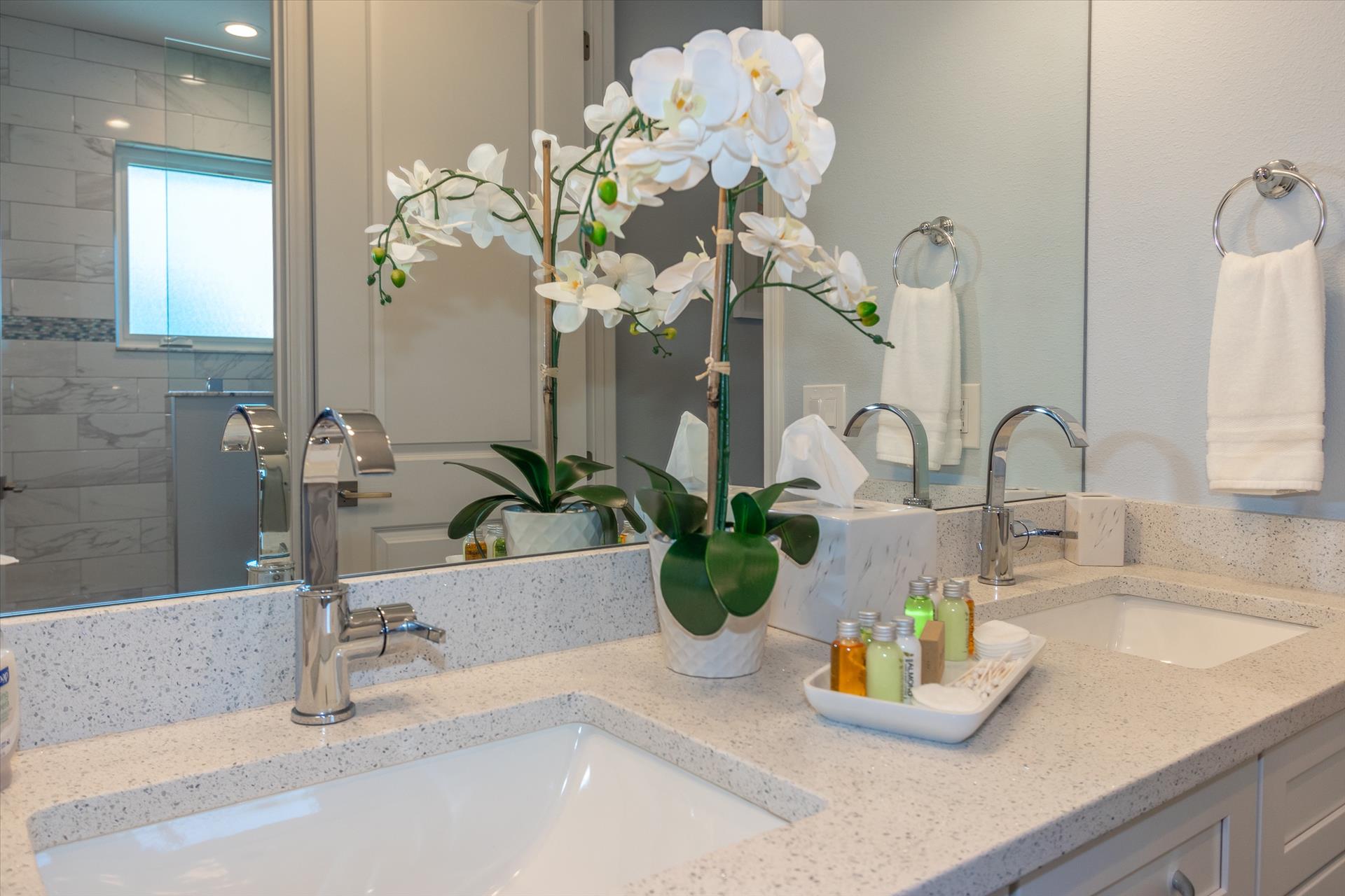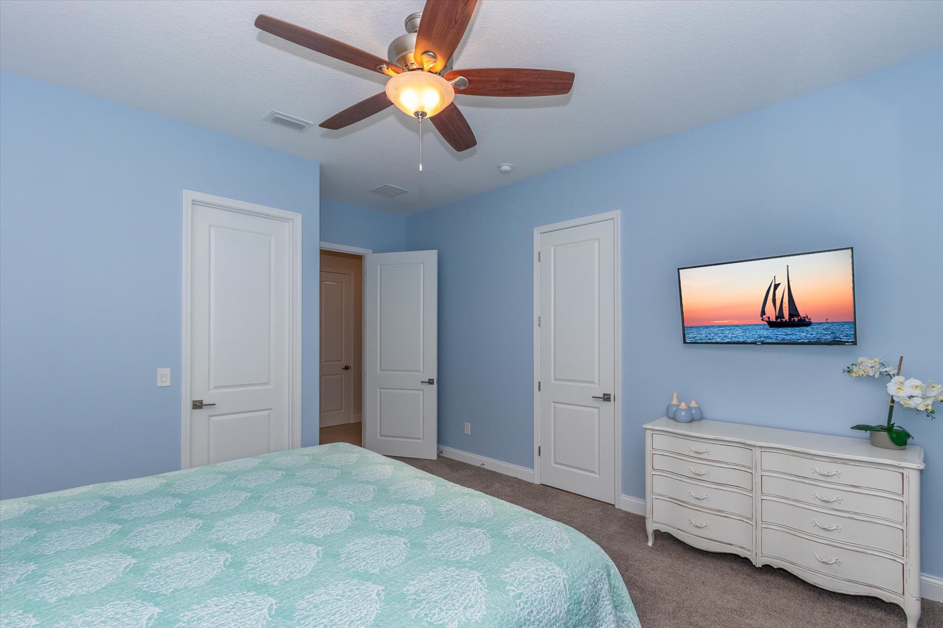 The third floor consists of 4 more bedrooms. The master bedroom has a king bed and large walk in closet. The master bathroom features a soaking tub and separate walk in shower as well as a double sink/vanity unit. Bedroom 2 - The 'Second Master' has a king bed and en suite bathroom with tub/shower combination. The other two bedrooms on this level share a Jack'n'Jill bathroom. One bedroom has a queen bed and the other has a king bed. There is also a laundry room on the 3rd floor, as well as another large balcony with incredible birds’ eye views over the beach. All of the bedrooms have flat screen TV's.