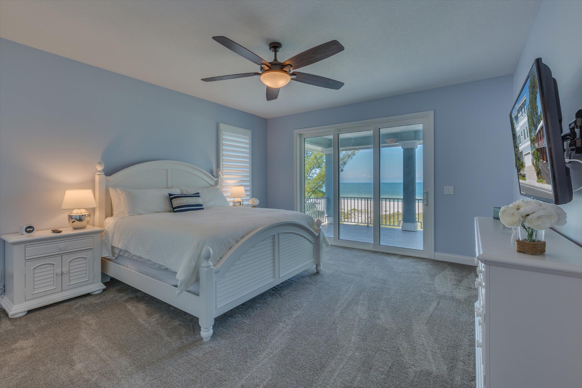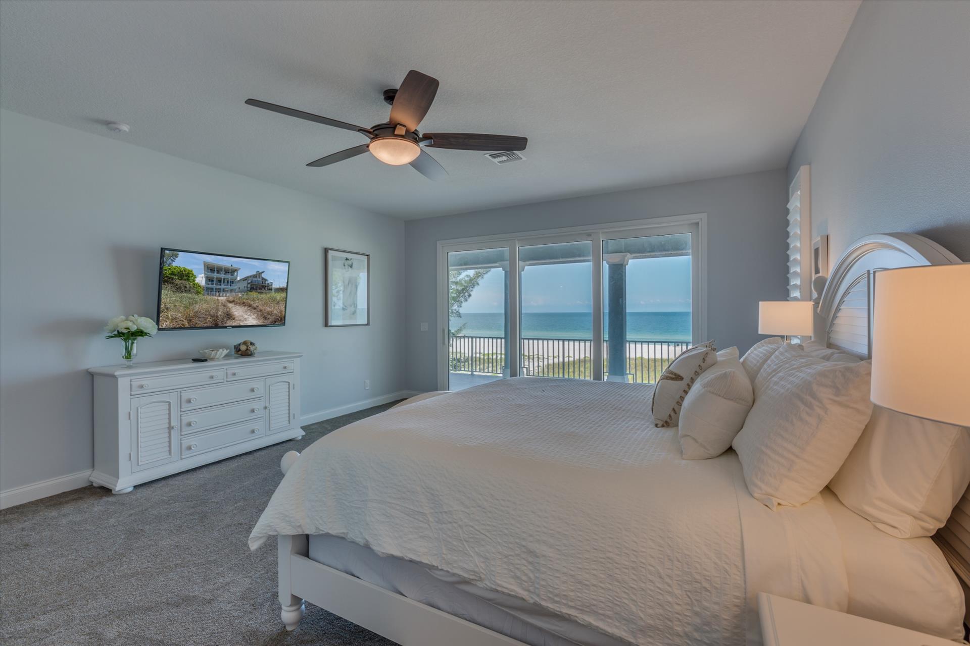 Bedroom 2 has a king bed and an ensuite tub/shower combination. This bedroom and the master share a large balcony with incredible views of the beach and the Gulf of Mexico.